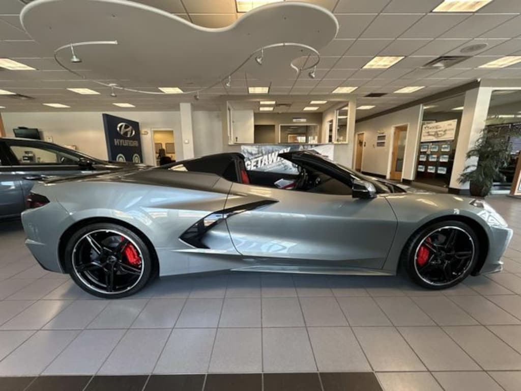 14 Speakers, 2 Cargo Nets, 2-Tone Seats, 4-Wheel Disc Brakes, 8-Way Power Driver Seat Adjuster, 8-Way Power Passenger Seat Adjuster, ABS brakes, Air Conditioning, Alloy wheels, AM/FM radio: SiriusXM, Apple CarPlay/Android Auto, Auto-dimming door mirrors, Auto-dimming Rear-View mirror, Automatic temperature control, Black Exhaust Tips, Black Lug Nuts (LPO), Black Wheel Center Caps w/Gray Stingray Logo (LPO), Black Wheel Locks (LPO), Bose Performance Series Sound System w/14 Speakers, Brake assist, Bright Red-Painted Calipers, Bumpers: body-color, Compass, Convertible HardTop, Convertible roof lining, Convertible Top w/Carbon Flash Nacelles & Roof, Delay-off headlights, Driver door bin, Driver Power Bolster Seat Adjuster, Driver vanity mirror, Dual front impact airbags, Dual front side impact airbags, Electrical Theft Deterrent System, Electronic Stability Control, Emergency communication system: OnStar and Chevrolet connected services capable, Four wheel independent suspension, Front anti-roll bar, Front Bucket Seats, Front Center Armrest, Front dual zone A/C, Front License Plate Bracket, Front reading lights, Fully automatic headlights, Garage door transmitter, Glass rear window, GT1 Bucket Seats, GT2 Bucket Seats, HD Front & Rear Vision Cameras, HD Radio, Head-Up Display, Heads-Up Display, Heated & Vented Driver & Passenger Seats, Heated door mirrors, Heated front seats, Heated Steering Wheel, Heated steering wheel, Illuminated entry, Integrated roll-over protection, Leather Shift Knob, Leather steering wheel, Low tire pressure warning, Low-Profile Rear Spoiler & Front Splitter, Memory Driver & Passenger Convenience Package, Memory seat, Mulan Lthr Seating Surfaces w/Perforated Inserts, Navigation System, Occupant sensing airbag, Outside temperature display, Overhead console, Panic alarm, Passenger door bin, Passenger Power Bolster Seat Adjuster, Passenger vanity mirror, Performance Data & Video Recorder, Performance Exhaust w/Stainless-Steel Tips, Power convertible roof, Power door mirrors, Power Driver Lumbar Control Seat Adjuster, Power driver seat, Power Passenger Lumbar Control Seat Adjuster, Power passenger seat, Power steering, Power windows, Power-Adjustable Outside Heated Mirrors, Preferred Equipment Group 2LT, Premium audio system: Chevrolet Infotainment 3 Premium, Premium Carpeted Floor Mats, Radio data system, Radio: Chevrolet Infotainment 3 Premium System, Rear anti-roll bar, Rear Cross Traffic Alert, Rear window defroster, Remote keyless entry, Security system, Side Blind Zone Alert, SiriusXM Radio, Speed control, Speed-sensing steering, Sport steering wheel, Steering wheel memory, Steering wheel mounted audio controls, Tachometer, Telescoping steering wheel, Tilt steering wheel, Traction control, Trip computer, Turn signal indicator mirrors, Universal Home Remote, Variably intermittent wipers, Vehicle Inclination Theft Deterrent Sensor, Vehicle Interior Movement Theft Deterrent Sensor, Ventilated front seats, Voltmeter, Wheels: 19" x 8.5" Fr/20" x 11" Rr Bright Silver, Wheels: 19" x 8.5" Fr/20" x 11" Rr Carbon Flash, Wireless Charging for Devices.